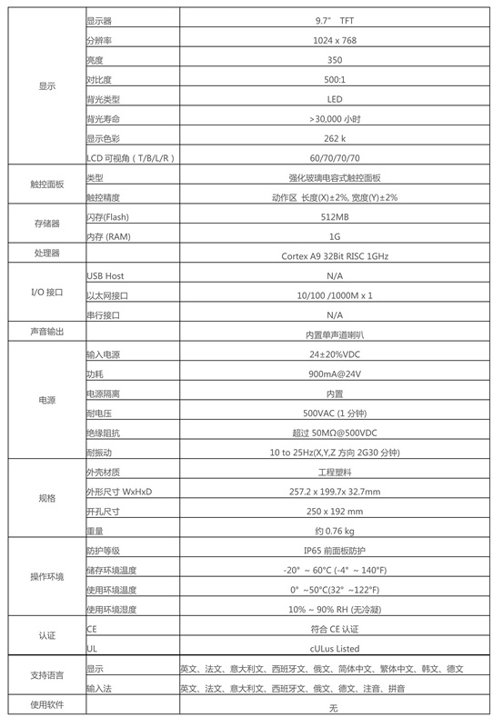 • 觸控壽命大于電阻式觸控人機界面
