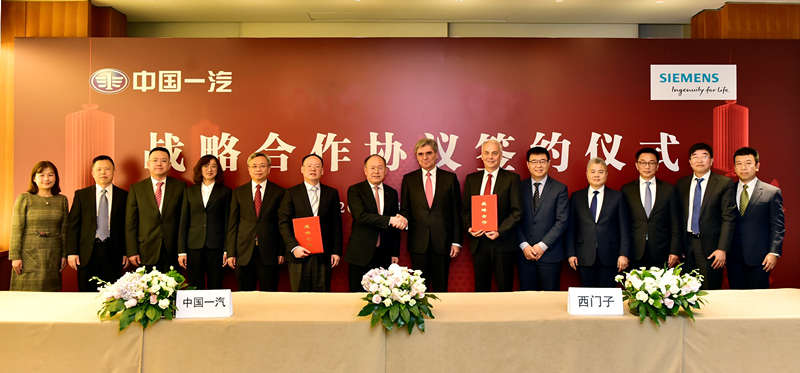 西門子與中國第一汽車集團(tuán)有限公司(以下簡稱“中國一汽”)今天在京簽署戰(zhàn)略合作協(xié)議,雙方將共同攜手合作打造紅旗品牌先進(jìn)的數(shù)字化工廠,打通其汽車業(yè)務(wù)價(jià)值鏈,樹立中德合作數(shù)字化工廠的典范。西門子股份公司總裁兼首席執(zhí)行官凱颯(Joe Kaeser)和中國一汽董事、總經(jīng)理、黨委副書記奚國華共同見證了合作協(xié)議的簽署。